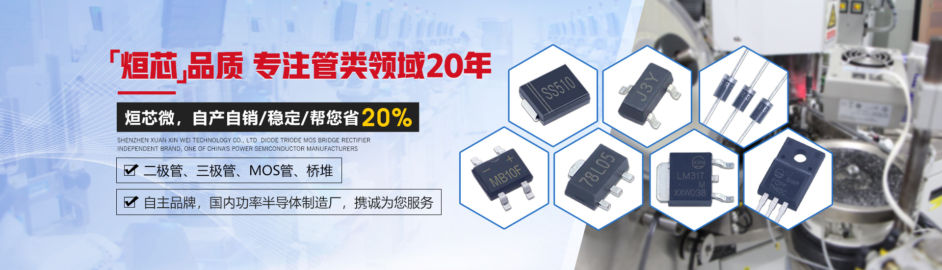 深圳市烜芯微科技有限公司是一家集研發(fā)、生產(chǎn)、銷售于一體,專注于二極管、三極管,MOS管、橋堆等功率半導(dǎo)體領(lǐng)域發(fā)展的企業(yè)。采用國(guó)際領(lǐng)先的GPP芯片生產(chǎn)工藝及一心多Die高精密制造工藝,擁有功率半導(dǎo)體器件工程實(shí)驗(yàn)室,全自動(dòng)高精密生產(chǎn)設(shè)備,產(chǎn)品層層把控,全程可追溯,保障了每只產(chǎn)品的卓越品質(zhì)。 產(chǎn)品封裝包括SMA,SMAF,SMB,SMBF,SMC,SOD-123,SOD-123FL,SOD-323,SOD-323FL,SOD-523,SOD-723,SOT-23,SOT-89,SOT23-3L,SOT23-5L,SOT23-6L,SOT-223,SOT-523,SOT-723,DO-41,DO-15,DO-27,DO-35,R-1,R-6,LL-34,LL-41,TO-277,TO-92,TO-92S,TO-92L,TO-126,TO-251,TO-252,TO-262,TO-263,TO-220,TO-220F,TO-247,TO-3P,TO-264,MBS,MBF,MBM,ABS,UMB,UMSB,DB,DBS,D3K,KBP,GBP,GBU,GBL,GBJ,KBL,KBU,KBJ,KBPC,KBPC6,KBPC8,KBPC-W,DNF,TSSOP-8,TSSOP-16,SOP-4,SOP-6,SOP-8,SOP-10,SOP-14,SOP-16,DIP-4,DIP-6,DIP-8,DIP-10,DIP-14,DIP-16,月產(chǎn)各封裝達(dá)6億只。 公司通過了ISO14001環(huán)境管理體系認(rèn)證,產(chǎn)品均獲得了ISO9001質(zhì)量體系認(rèn)證、UL、SGS等認(rèn)證,符合歐盟最新RoHs指令。擁有和致力于烜芯微/XXW自主品牌產(chǎn)品的推廣,提供技術(shù)支持,選型替換,cost down方案及擁有專業(yè)的生產(chǎn)管理團(tuán)隊(duì)和銷售團(tuán)隊(duì),保證了供貨穩(wěn)定及售前選型服務(wù)等問題。 公司產(chǎn)品廣泛應(yīng)用于開關(guān)電源、適配器、逆變器、控制器、汽車電子、家用電器、通訊設(shè)備、無線充、鋰電池保護(hù)板、驅(qū)動(dòng)電機(jī)、安防警報(bào)、太陽能光伏產(chǎn)業(yè)等多個(gè)領(lǐng)域。取得了國(guó)內(nèi)外眾多品牌大廠的認(rèn)可與合作,我們將堅(jiān)持奉行“烜芯品質(zhì),誠(chéng)信經(jīng)營(yíng),合作共贏”為公司經(jīng)營(yíng)理念!竭誠(chéng)為新老客戶提供優(yōu)質(zhì)的產(chǎn)品及服務(wù)。